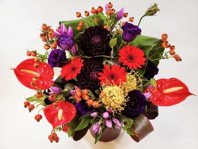 岩手県盛岡市 【田村フローリスト】赤・紫系アレンジメント モーブ 22,000円 出典:ふるなび