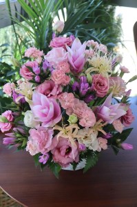 岩手県盛岡市 【田村フローリスト】ピンク系アレンジメント アカシア 22,000円 出典:ふるなび