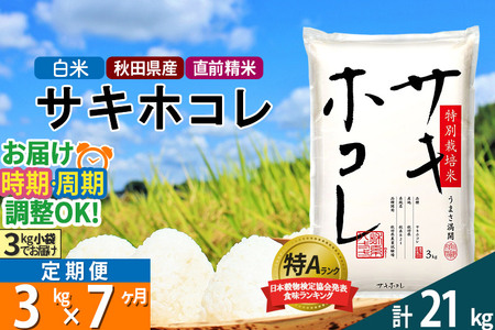 秋田県仙北市 【白米】<新米>《定期便7ヶ月》秋田県産 サキホコレ 特別栽培米 3kg(3kg×1袋)×7回 令和5年産 3キロ お米 開始時期選べる 49,000円 出典:ふるなび