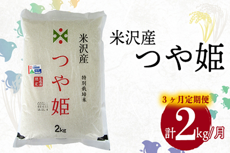 山形県米沢市 【3ヶ月定期便】R2年産 米沢産つや姫 2kg/月(2kg×1袋)R2.12~R3.2発送 特別栽培米 12,000円 出典:ふるなび