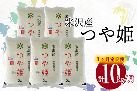 山形県米沢市 【3ヶ月定期便】R2年産 米沢産つや姫 10kg/月(2kg×5袋)R2.12~R3.2発送 特別栽培米 52,000円 出典:ふるなび