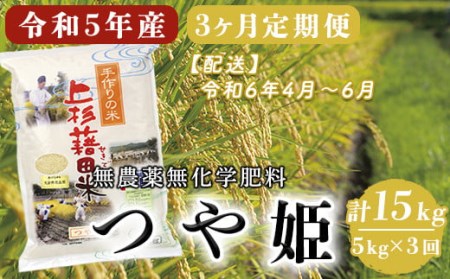 山形県米沢市 【3ヶ月定期便 / 令和5年産 新米】 つや姫 5kg/月 計15kg 〈2024年4~6月配送〉 無農薬無化学肥料栽培 ブランド米 農家直送 2023年産 [004R5-002-03] 43,000円 出典:ふるなび