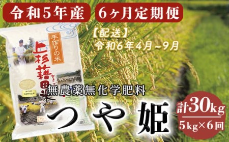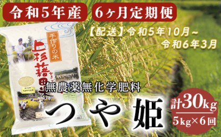 山形県米沢市 《先行予約》【6ヶ月定期便 / 令和5年産 新米】 つや姫 5kg/月 計30kg 〈2023年10~2024年3月配送〉 無農薬無化学肥料栽培 ブランド米 農家直送 2023年産 [004R5-003-01] 85,000円 出典:ふるなび