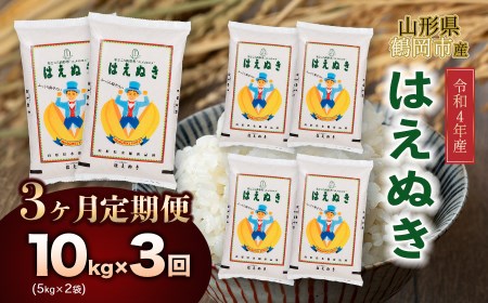 山形県鶴岡市 令和4年産 はえぬき 10㎏(5㎏×2) 3回定期便 30,000円 出典:ふるなび