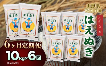 山形県鶴岡市 令和4年産 はえぬき 10㎏(5㎏×2) 6回定期便 60,000円 出典:ふるなび