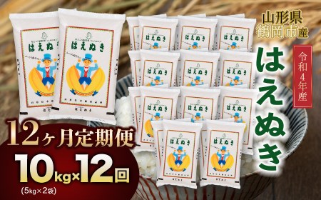 山形県鶴岡市 令和4年産 はえぬき 10㎏(5㎏×2) 12回定期便 120,000円 出典:ふるなび