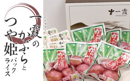 山形県鶴岡市 焼畑あつみかぶ原産地 一霞のかぶら漬けとつや姫のパックライスセット 11,000円 出典:ふるなび