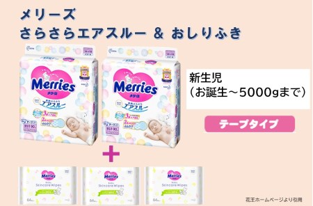 山形県酒田市 SA1529 メリーズさらさらエアスルー(テープタイプ) 新生児用(お誕生~5000gまで) 2パックとメリーズおしりふき 64枚入×3個セット 13,000円 出典:ふるなび