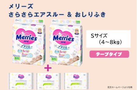 山形県酒田市 SA1530 メリーズさらさらエアスルー(テープタイプ) Sサイズ(4~8kg) 2パックとメリーズおしりふき 64枚入×3個セット 13,000円 出典:ふるなび