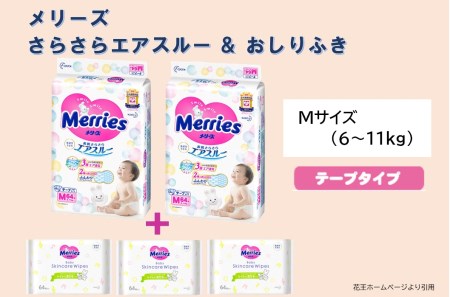 山形県酒田市 SA1531 メリーズさらさらエアスルー(テープタイプ) Mサイズ(6~11kg) 2パックとメリーズおしりふき 64枚入×3個セット 13,000円 出典:ふるなび