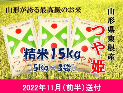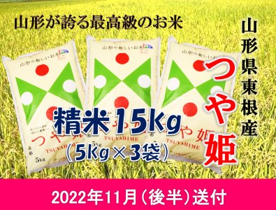 山形県東根市 米 つや姫15kg (2022年11月後半送付) 令和4年産 K-2196 23,000円 出典:ふるなび