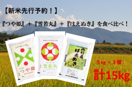 山形県東根市 【新米 先行予約】令和5年産 山形ブランド米 食べ比べ 5kg×3種 晴天畑提供 K-2406 31,000円 出典:ふるなび