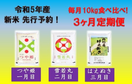 山形県東根市 【新米 先行予約 定期便】令和5年産 山形ブランド米 食べ比べ 10kg×3回 晴天畑提供 K-2407 58,000円 出典:ふるなび