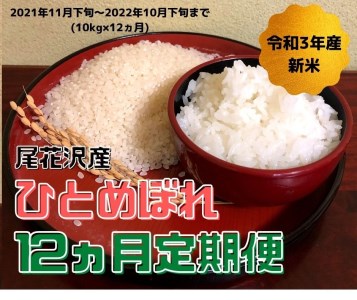 山形県尾花沢市 【令和3年産新米・予約】尾花沢産ひとめぼれ12ヵ月定期便(10kg×12ヵ月)【12702P】 128,000円 出典:ふるなび