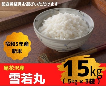 山形県尾花沢市 【令和3年産新米・予約】尾花沢産雪若丸 精米15kg(5kg×3袋) 【308P】 17,000円 出典:ふるなび