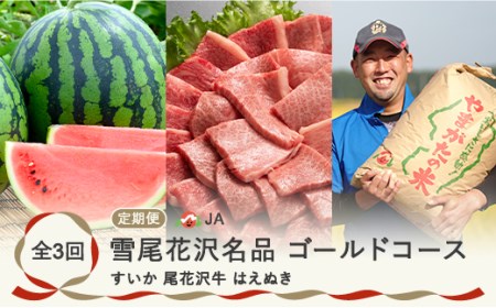 山形県尾花沢市 厳選~尾花沢市自慢の3品定期便 ゴールドコース(米・尾花沢牛・すいか) ja-jtgdx 53,000円 出典:ふるなび