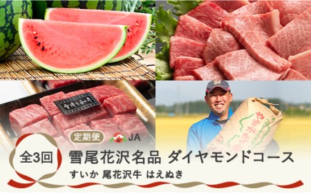 山形県尾花沢市 厳選~尾花沢市自慢の3品定期便 ダイヤモンドコース(米・尾花沢牛・すいか) ja-jtdmx 84,000円 出典:ふるなび