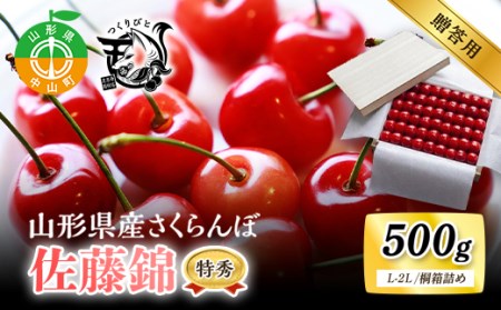 山形県中山町 《先行予約・期間限定》さくらんぼ 佐藤錦 特秀 L-2L 500g《桐箱詰め》数量限定 F4A-0067 50,000円 出典:ふるなび
