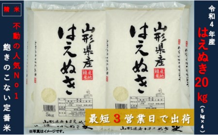 山形県舟形町 【無洗米】はえぬき20kg(5kg×4袋)令和4年産 17,000円 出典:ふるなび
