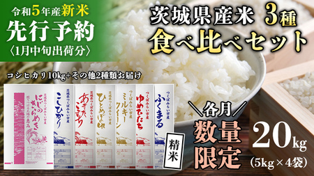 茨城県つくばみらい市 【 新米 先行予約 / 1月下旬出荷分】《 令和5年産 》茨城県産 米 3種 食べ比べ セット 精米 20kg ( コシヒカリ 10kg +その他2種)【 各月 数量限定 】 こしひかり 米 コメ こめ 茨城県産 国産 美味しい お米 おこめ おコメ 食べ比べ 12,000円 出典:ふるなび