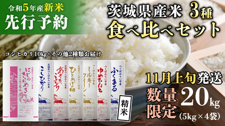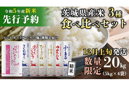 茨城県つくばみらい市 【 新米 先行予約 / 12月上旬出荷分】《 令和5年産 》茨城県産 米 3種 食べ比べ セット 精米 20kg ( コシヒカリ 10kg +その他2種)【 各月 数量限定 】 こしひかり 米 コメ こめ 茨城県産 国産 美味しい お米 おこめ おコメ 食べ比べ 12,000円 出典:ふるなび