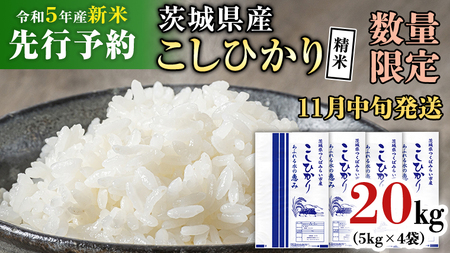 茨城県つくばみらい市 【 新米 先行予約 / 11月中旬出荷分】《 令和5年産 》茨城県産 コシヒカリ 精米 20kg ( 5kg ×4袋 )【 各月 数量限定 】 こしひかり 米 コメ こめ 茨城県産 国産 美味しい お米 おこめ おコメ 12,000円 出典:ふるなび