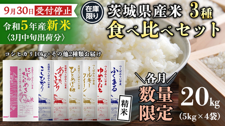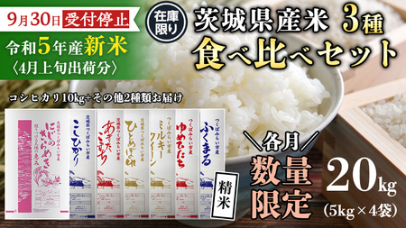 茨城県つくばみらい市 【 9月30日 で受付終了 / 3月上旬 在庫限り 】《 令和5年産 新米 》茨城県産 米 3種 食べ比べ セット 精米 20kg ( コシヒカリ 10kg +その他2種) こしひかり 米 コメ こめ 茨城県産 国産 美味しい お米 おこめ おコメ 食べ比べ 12,000円 出典:ふるなび