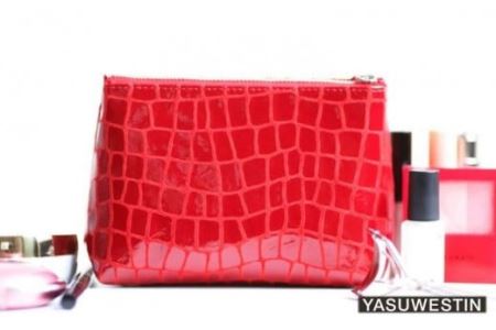 千葉県野田市 AM001 カラフルレザー化粧ポーチ (ローズレッド) 17,000円 出典:ふるなび