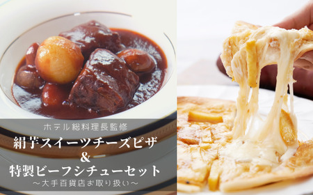 千葉県習志野市 絹芋スイーツチーズピザ&高級無化学調味料ビーフ赤ワイン煮込みシチュー詰め合わせ 18,000円 出典:ふるなび