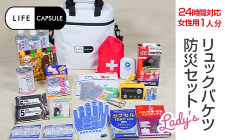 【ブラック】 LifeCapsule リュックバケツ防災セットLady's 1人分 ※着日指定不可