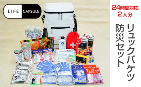 【ブラック】 LifeCapsule リュックバケツ防災セット 2人分 ※着日指定不可