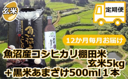 新潟県小千谷市 r05-208-001 【定期便・毎月/12回】魚沼産コシヒカリ・棚田米【玄米】5kg+黒米あまざけ1本×12回(毎月お届け)(佐藤農場) 208,000円 出典:ふるなび