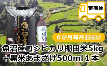 新潟県小千谷市 r05-104-001 【定期便・毎月/6回】魚沼産コシヒカリ・棚田米【玄米】5kg+黒米あまざけ1本×6回(毎月お届け)(佐藤農場) 104,000円 出典:ふるなび