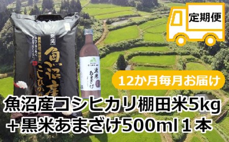 新潟県小千谷市 r05-224-001 【定期便・毎月/12回】魚沼産コシヒカリ・棚田米【白米】5kg+黒米あまざけ1本×12回(毎月お届け)(佐藤農場) 224,000円 出典:ふるなび