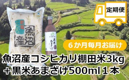 新潟県小千谷市 r05-078-001 【定期便・毎月/6回】魚沼産コシヒカリ・棚田米【白米】3kg+黒米あまざけ1本×6回(毎月お届け)(佐藤農場) 78,000円 出典:ふるなび
