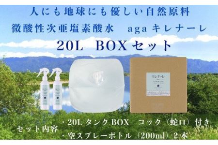 新潟県阿賀町 微酸性次亜塩素酸水 agaキレナーレ 20Lセット コック式BOX 空スプレーボトル付 12,000円 出典:ふるなび