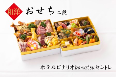 石川県小松市 094001. 【2021年12月31日お届け】ホテルビナリオKOMATSUセントレ おせち 和洋二段重 94,000円 出典:ふるなび