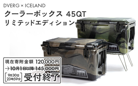 福井県坂井市 ※9/30 23:59受付終了(告示改正の為) キャンプ アウトドア DVERG × ICELANDクーラーボックス45QT リミテッドエディション (ディープフォレストカモ) 1個 [K-8003_02] 120,000円 出典:ふるなび