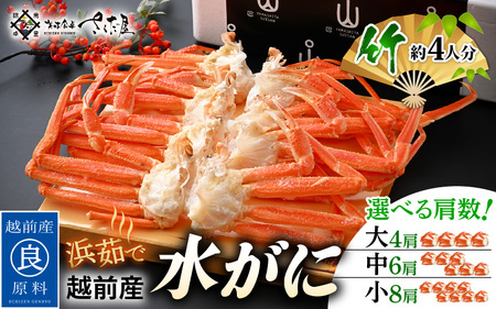 福井県越前町 【先行予約】【期間限定】浜茹で 越前産 水がに ≪竹セット≫ 4~8肩 (約4人前) 脱皮したてのずわいがに【福井県 越前町 かに カニ 蟹 ずわいがに ズワイガニ 雄 ズボガニ 水ガニ かに足 冷蔵 越前ガニ 越前かに 越前カニ】【中サイズ6肩】【2024年2月20日以降 順次発送予定】 [e04-x016_b] 29,000円 出典:ふるなび
