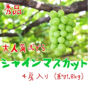 山梨県大月市 【大人気】ぶどう名産地やまなしの濃厚シャインマスカット 秀品 約1.8kg(4房)入り ※8 月下旬~10月上旬頃順次発送 20,000円 出典:ふるなび
