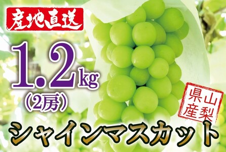 山梨県大月市 【豊作につき追加】鮮度抜群!産地直送シャインマスカット2房(約1.2kg) 10,000円 出典:ふるなび