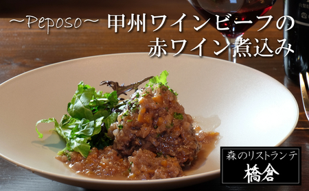 山梨県大月市 ペポーゾ「甲州ワインビーフの赤ワイン煮込み」 17,000円 出典:ふるなび