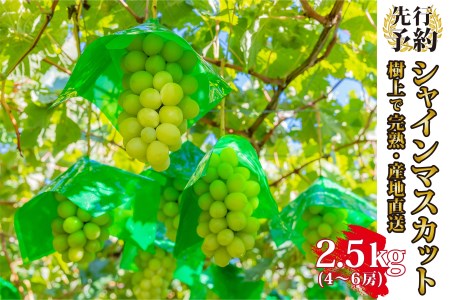 山梨県南アルプス市 2.5-1-5【2021年8月下旬頃から発送】採れたてシャインマスカット4~6房(約2.5kg) 25,000円 出典:ふるなび