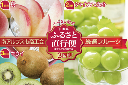 山梨県南アルプス市 3.5-1-14【2023年7月中旬から順次発送】 南アルプス市商工会が厳選した四季折々の完熟フルーツ「特選フルーツ産地直送便(年3回コース)」 35,000円 出典:ふるなび
