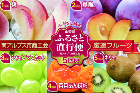 山梨県南アルプス市 7-1-4【2023年7月中旬から順次発送】 南アルプス市商工会が厳選した四季折々の完熟フルーツ「特選フルーツ産地直送便(年5回コース)」 70,000円 出典:ふるなび