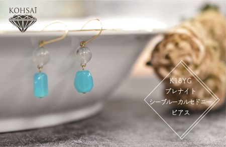 山梨県甲斐市 K18YG天然石ピアス(プレナイト×シーブルーカルセドニー) 70,000円 出典:ふるなび