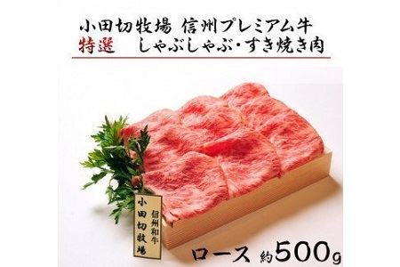 長野県中野市 小田切牧場 信州プレミアム牛肉 特選 ロース しゃぶしゃぶ・すき焼き用 500g 22,000円 出典:ふるなび