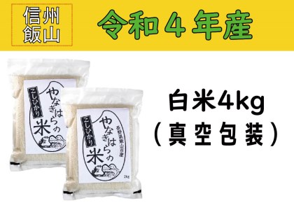 長野県飯山市 4-48A【令和4年産 】「やなぎはらの米 こしひかり」4㎏(真空包装) 8,000円 出典:ふるなび