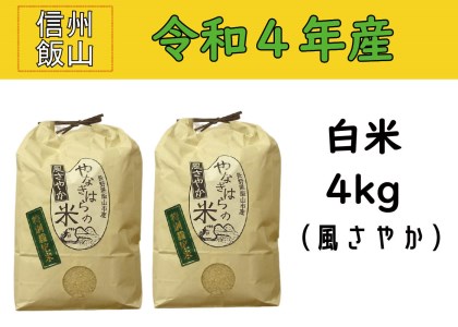 長野県飯山市 4-47A【令和4年産 】「やなぎはらの米 風さやか」4㎏ 7,000円 出典:ふるなび