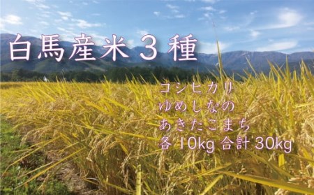 長野県白馬村 【3ヶ月定期】白馬産米 3種×10kg(コシヒカリ・ゆめしなの・あきたこまち)【D035-01】 35,000円 出典:ふるなび